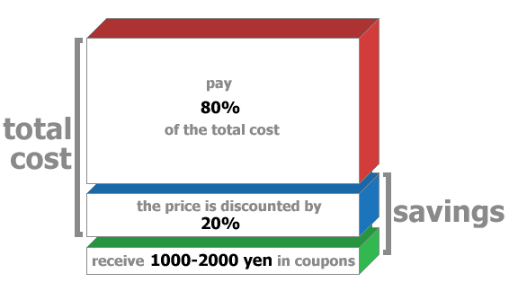 Depending on the issuing agent, the coupons are issued either in paper form or electronic form (to be used with a mobile device). Note that coupons are issued in multiples of 1000 yen, with the amount being rounded up or down to the nearest 1000 yen (500 and more is rounded up; less than 500 is rounded down).