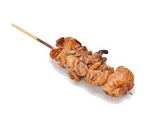 Yakitori (焼き鳥) are grilled chicken skewers made from bite sized pieces of meat from all different parts of the chicken, such as the breasts, thighs, skin, liver and other innards. Usually made to order and cooked over charcoal, yakitori is a popular, inexpensive dish commonly enjoyed together with a glass of beer. The best yakitori is served at specialty restaurants, known as yakitori-ya, but it can also be found at many other types of restaurants across Japan, such as izakaya, and at festival food stands.